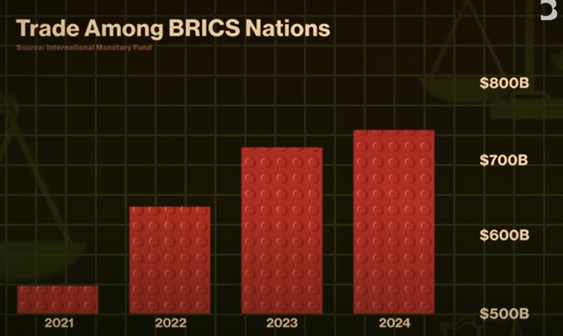 فكر فيها من وجهة نظر الروس مثلاً .. دلوقتي 35% من التجارة الخارجية اللي احنا بنعملها في السنة بتكون مع الصين فايه اللي يجبرني أنا كروسيا إني لما اشتري حاجة من الصين ادفع ثمنها بالدولار والعكس صحيح .. الصينيين علي قلبهم زي العسل إن أي حاجة هم بيبيعوها للروس تتباع باليوان اللي هي العملة بتاعتهم .. اللي يمشي علي روسيا يمشي علي البرازيل .. بداية من 2009 وانت طالع الصين بقت الشريك التجاري الأهم للبرازيل .. اذن الظروف جاهزة إن دول البريكس ترمي الدولار ورا ظهرها .. السؤال هو ليه ده محصلش لحد دلوقتي؟