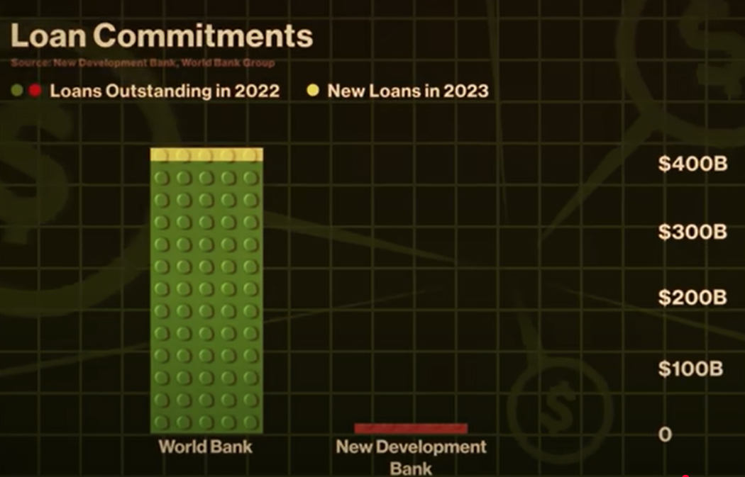 سنة 2014 لما فكرة البريكس اتولدت اتولد معاها بنك خليني أقولك إنه من سنة 2014 لحد سنة 2023 يعني بتتكلم في تسع سنين عطي قروض بقيمة 30 مليار دولار عشان تتعمل مشاريع بنية تحتية ودي حاجة مغرية فشخ لدولة زي مصر مثلاً .. إنتي كمصر عايزة قرض عشان تعملي أي مشروع في دماغك إياكش حتي مشروع قومي لمزارع البط فبدل ما تروحي تاخدي القرض من البنك الدولي أو من صندوق النقد الدولي يفشخك في شروطه فبتاخدي نفس القرض من New Development Bank وبتسددي ثمنه حين ميسرة .. بلاش دي .. لما تيجي تاخد قرض مش حيقولك لازم تاخده بالدولار وترده بالدولار ده انت ممكن تاخده بالجنيه وترده بالجنيه .. وده السبب اللي علشانه سنة 2024 فيه 4 دول تانيين انضموا للبريكس اللي هم مصر والإمارات وأثيوبيا و إيران وعشان كده بقوا بيسموا بريكس اسم سيكسي شوية BRICS+ وأول مرة فرح العمدة ده يقعد مع بعضه كانت في أكتوبر 2024 لما اتعمل مؤتمر البريكس بلاس في مدينة كازان الروسية .. سنة 2025 أندونيسيا انضمت .. يعني البريكس علي الورق هم 10 دول بس رسمياً هم خمسة عشان بس متتخيلش إن بشكل ما مصر ليها صوت قوي في اللي بيحصل .. بس ده مش معناه إن بنك التطوير الجديد ده جامد زحليقة .. كم القروض اللي البنك ده عطاها في سنة 2021 مثلاً تعتبر تلت كم الفلوس اللي طلعها البنك الدولي في نفس السنة.